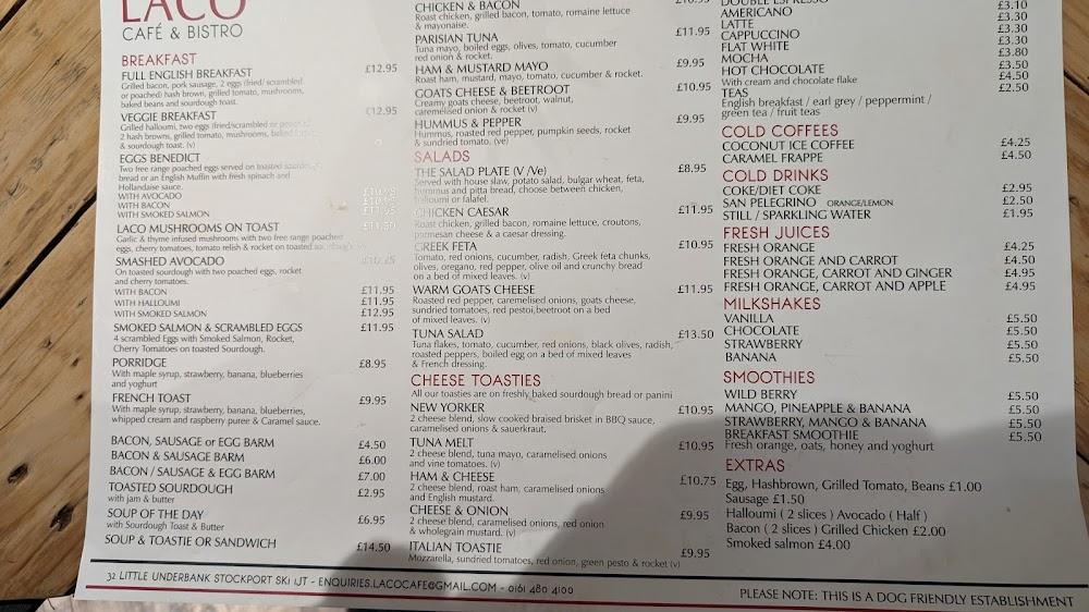 Situated at 32 Little Underbank, Stockport SK1 1JT, Laco Café & Bistro blends vintage charm with modern cafe culture. The café's trendy yet casual vibe welcomes everyone—families, students, and professionals. The friendly staff enhances the atmosphere, reflecting a personal touch that resonates with regulars. Nearby attractions like the Stockport Museum and the bustling market invite foot traffic, which makes this place a haven for tourists exploring the city.